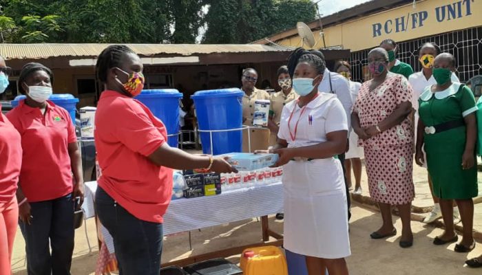 The items include set of veronica buckets, adult and toddler weighing scales, packs of nose masks, sanitizers, boxes of gloves, gallons of liquid soap, dust bins, deliveries gowns, and pieces of tissue papers. Receiving the items, the Acting Medical Superintendent of Abuakwa Polyclinic, Dr. Nana Nketia Ababio said the donation has come at the right time when facilities a battling with few PPE’S to ensure safety of health staff.On the infrastructure deficits, was happy that the OPD and other projects are under renovation to befit polyclinic statues.